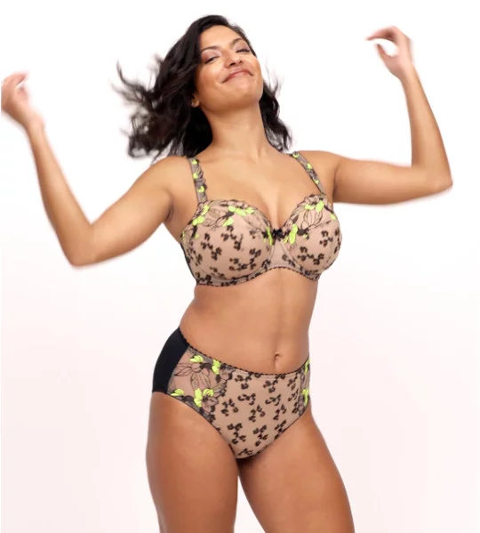 Soutien gorge armatures grande taille semi transparent noir et jaune Manali Wild Bloom