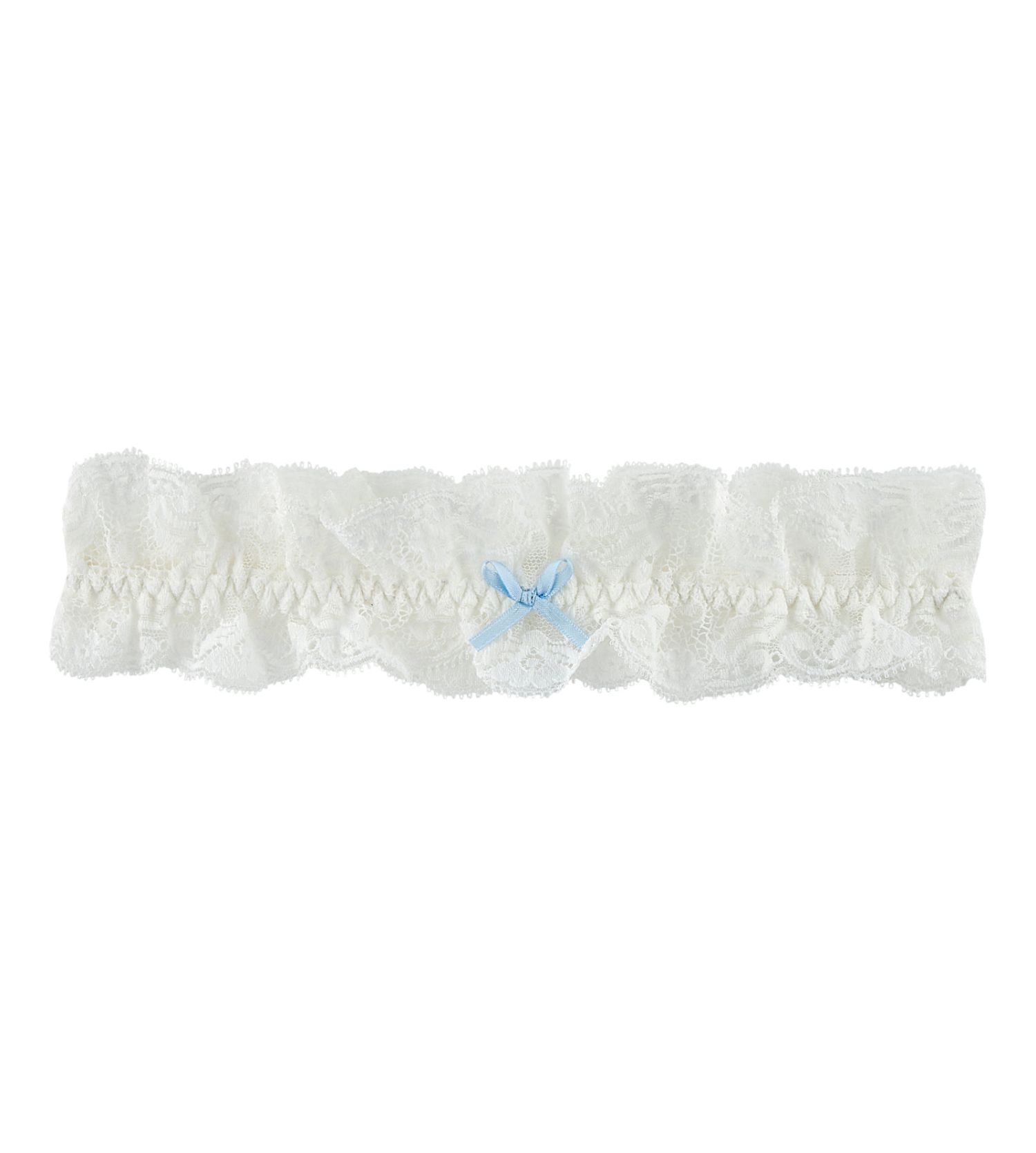 - Matières en dentelle Leavers avec ruban bleu, symbole de sincérité.