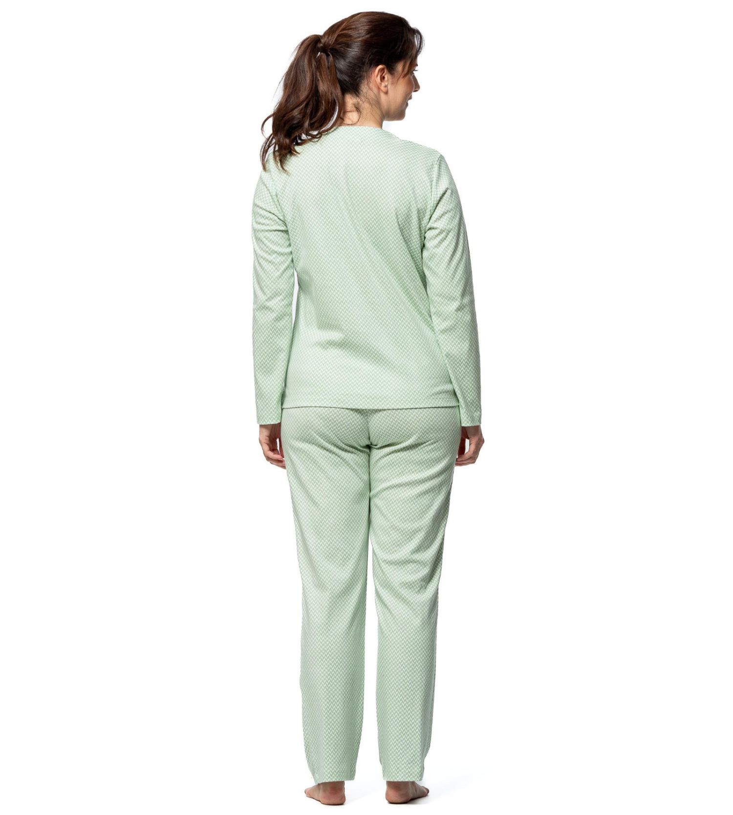 Pyjama long imprimé pied de poule vert col boutonné