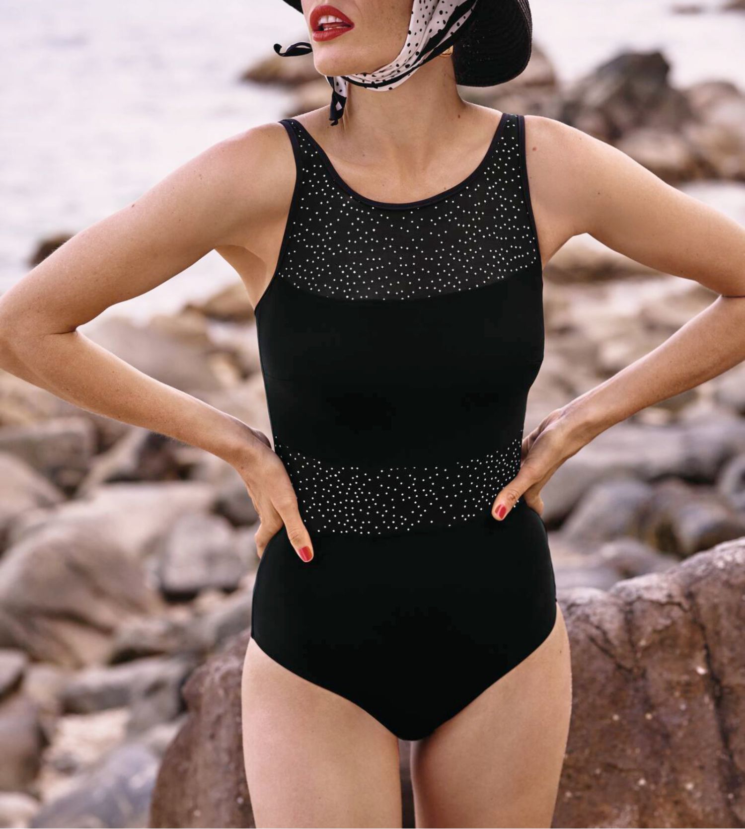 Maillot de bain pour prothèses avec tulle plumetis Noir