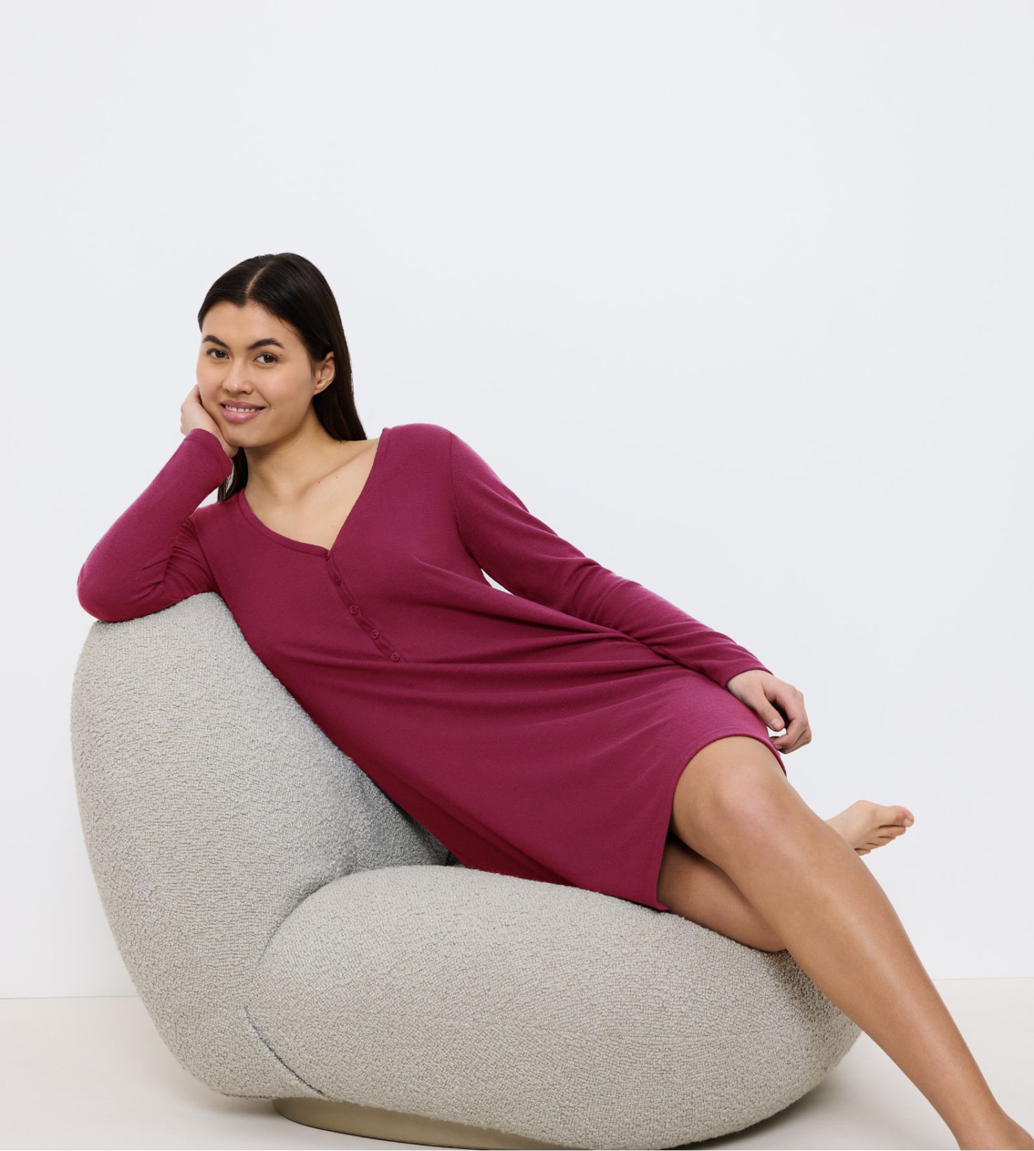 Nuisette douce à col boutonné en coton rose Mix & Match Sweet Marsala