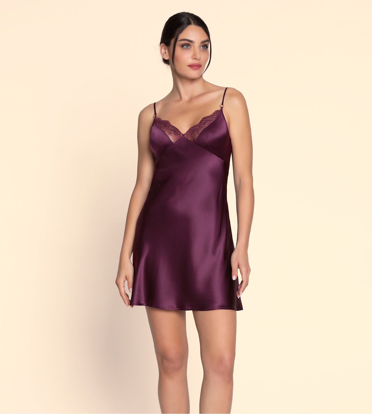 - Nuisette en soie et dentelle : matière noble et fluide pour un tombé élégant.