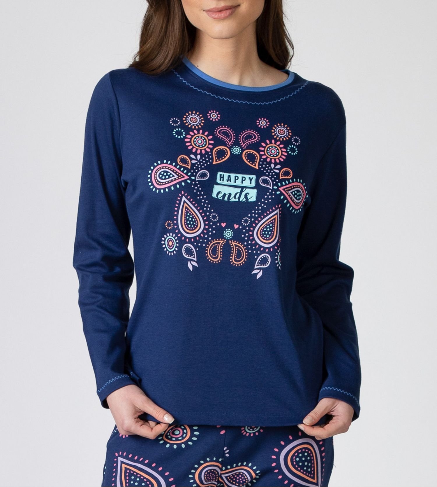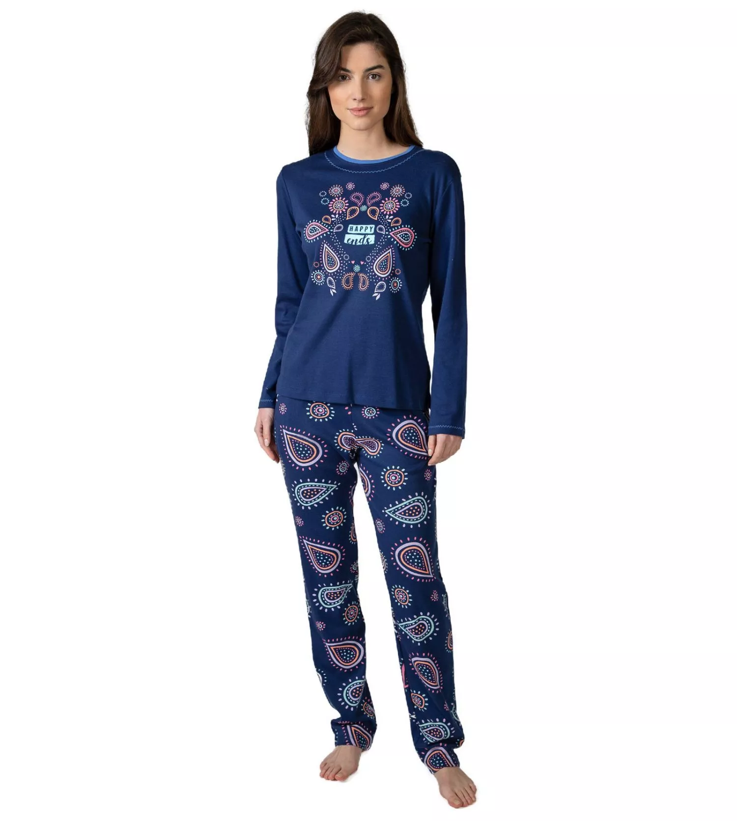 Pyjama droit bleu marine pour femme imprimé fun et coloré
