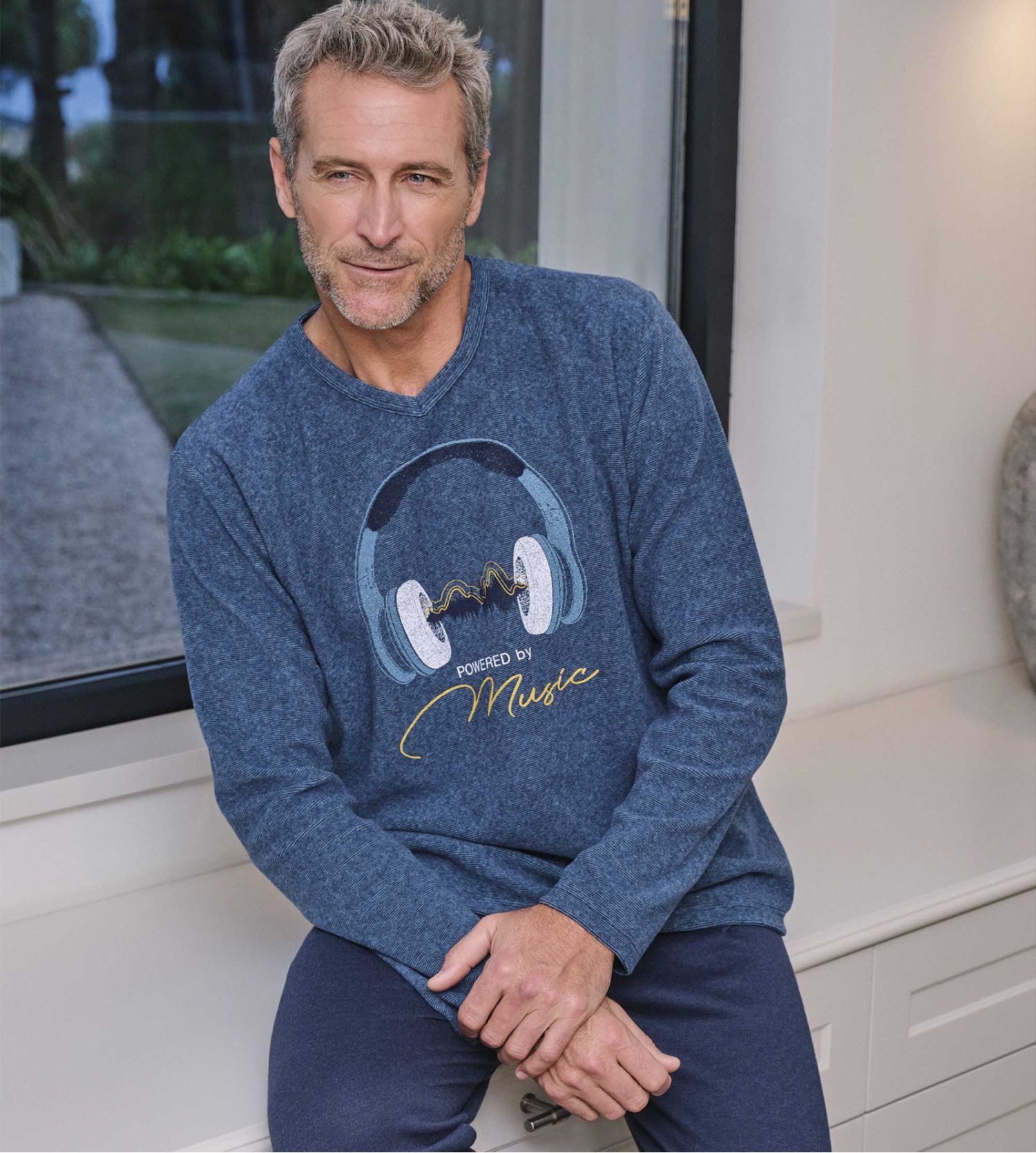 - Haut à manches longues imprimé d'un casque de musique à l'avant.