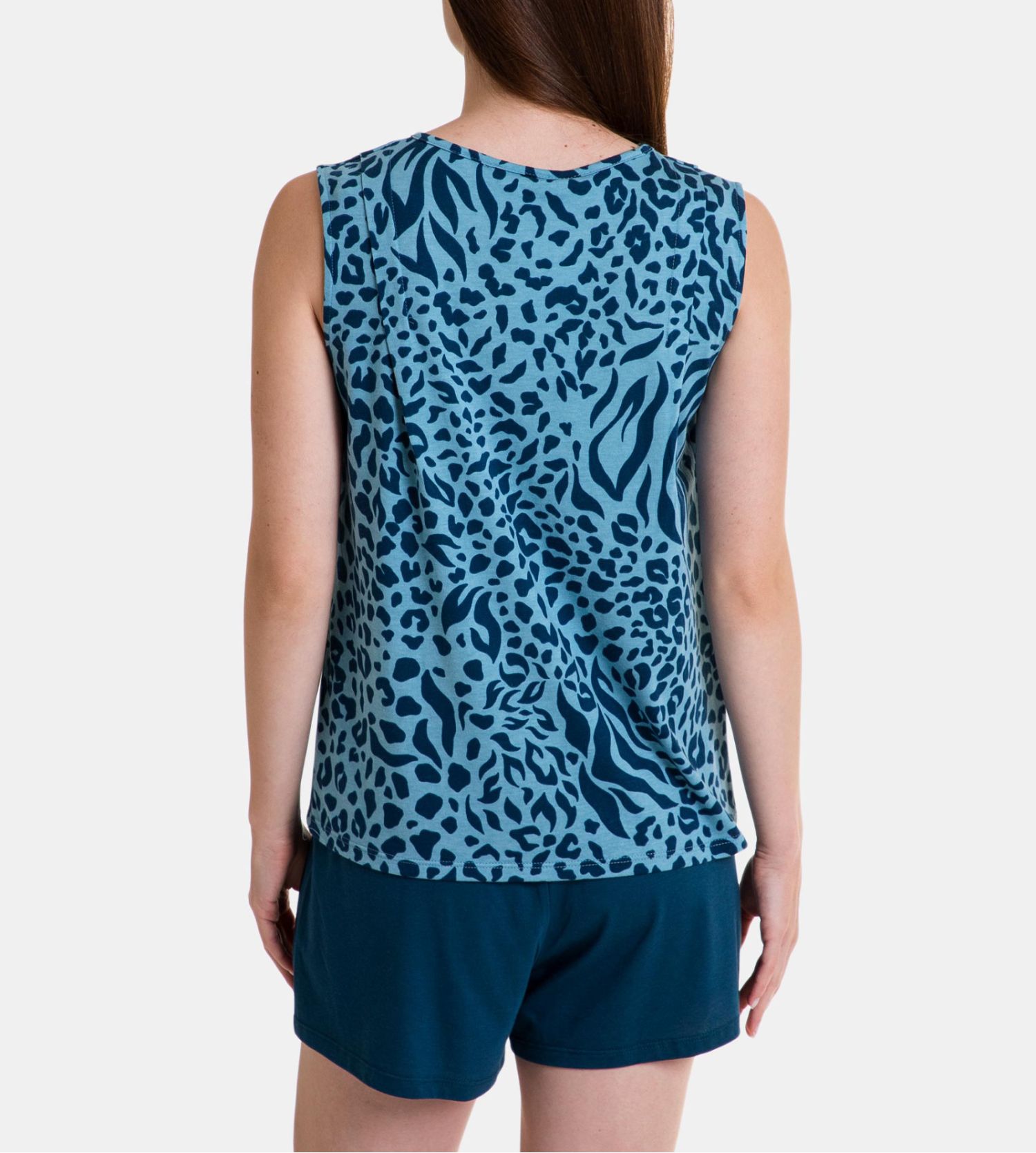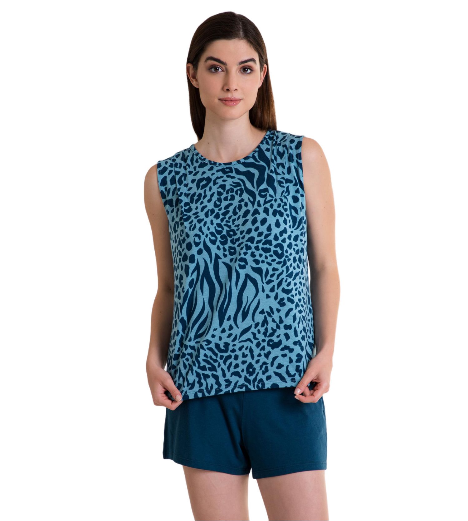 Pyjama court sans manches pour femme Couleur D'huile Bleu
