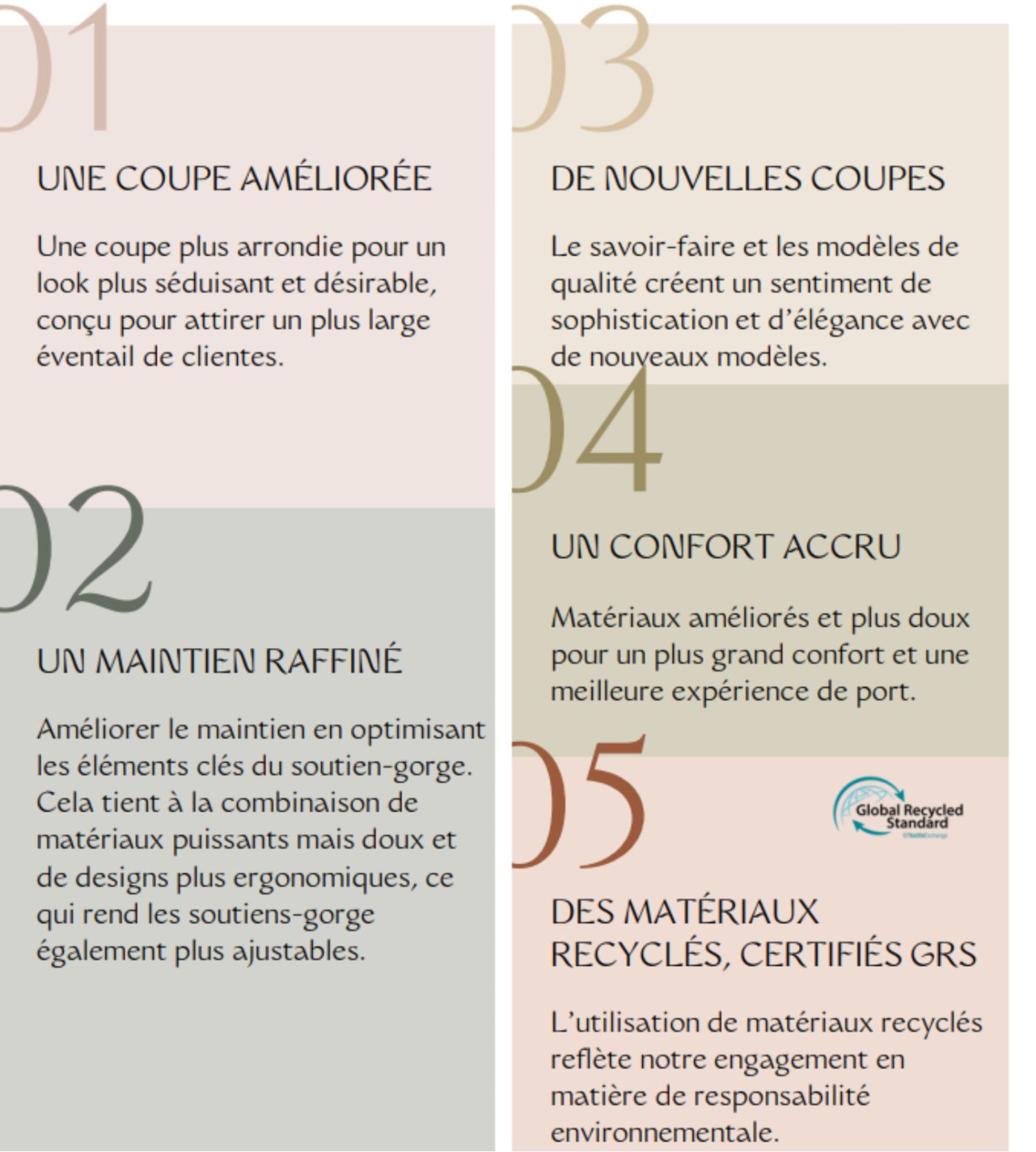 Anciennement Amourette 300, ce modèle a été repensé d'une manière plus moderne tout en offrant aux femmes, un confort et un maintien exceptionnels grâce à une coupe améliorée et des matériaux recyclés de qualité.