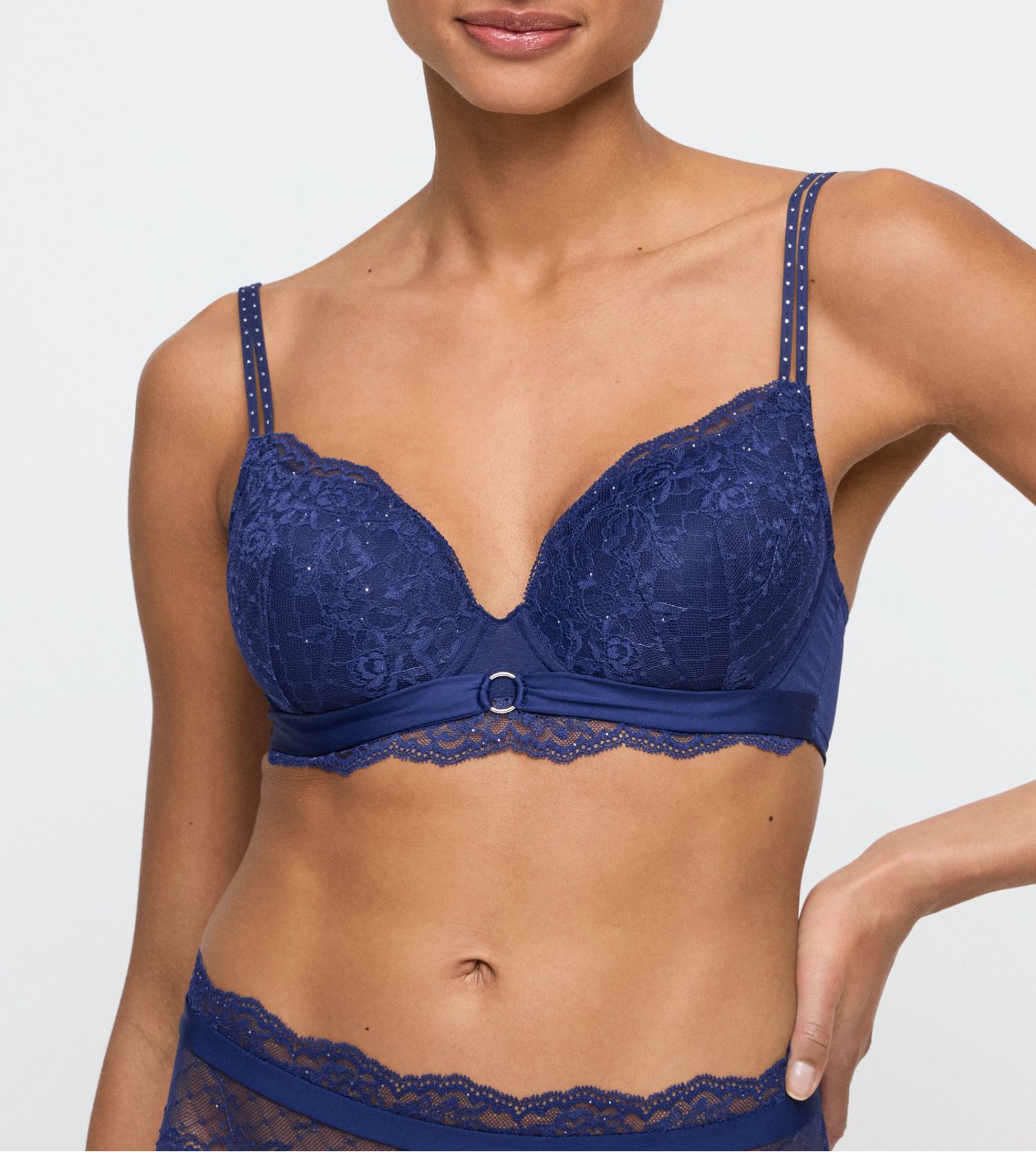 Soutien gorge push up bleu forme coeur dentelle et paillettes Musea