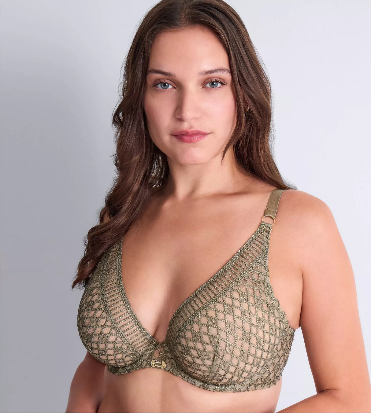 Le soutien-gorge de la collection Stardust Dream incarne l’allure scintillante et audacieuse chère à Aubade. Sa broderie luxueuse, réalisée en France, joue avec des fils métallisés et des effets lumineux pour offrir un rendu transparent et élégant. Le décolleté profond est rehaussé d’une bande graphique et de détails dorés à l’entregorge et aux bretelles, apportant une touche précieuse et moderne.